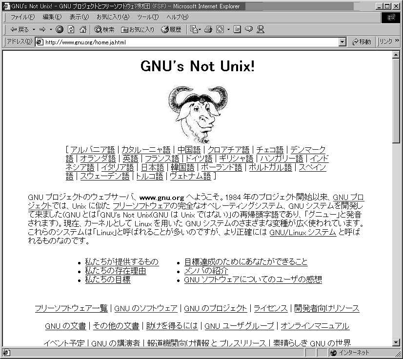 図2に示すWebページにGNUプロジェクトに関する文章があるので,興味のある読者は読んでみてください.