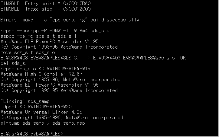 コンパイラは,上記デバッガに同梱した,MetaWare IncorporatedのHigh C/C++ Version 3.50 for Embedded PowerPCを採用.