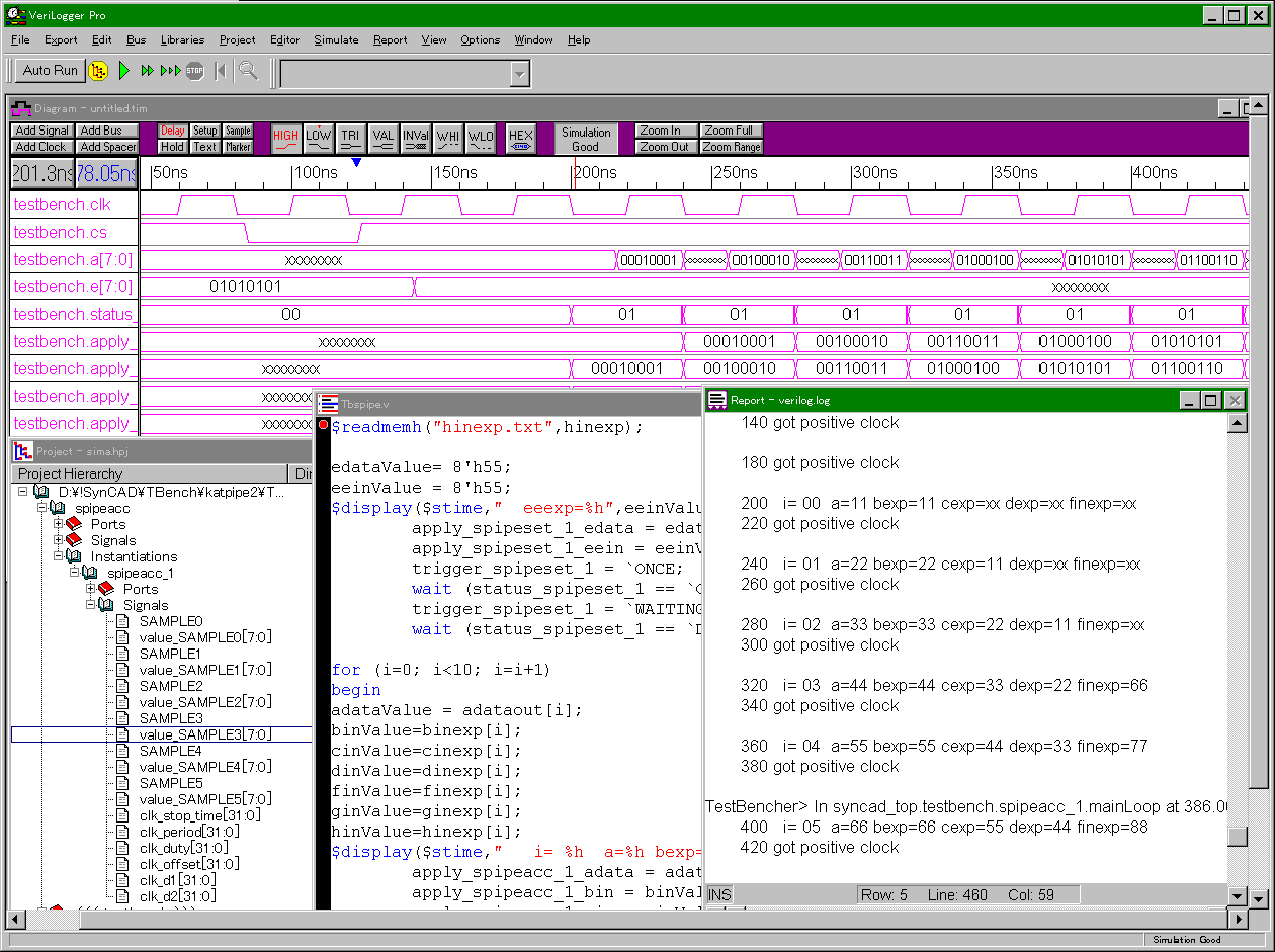 このように,VeriLogger Proは,テスト・スティミュラスを作成/編集しながらシミュレーションが行える,対話的(インタラクティブ)なシミュレーション機能も装備しています.