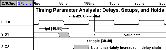 タイミング解析− 遅延,セットアップ・タイム,ホールド・タイムによるパラメータ解析