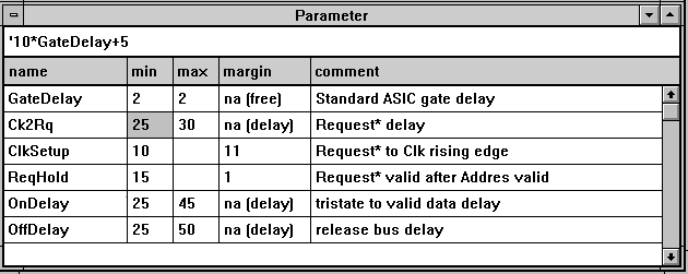 WaveFormer Pro は自動的にこのマージンを計算してスプレッド・シートに表示するので,設計者はこれを基に,必要十分な余裕を持つよう回路のタイミング調整を行えます.すべてのマージンはタイミング・パラメータの変更のつど自動的に計算し直され,結果が表示される(スプレッド・シート機能)ので,いろいろな設定を容易にシミュレーションでき,回路を最適化することができます(図5).