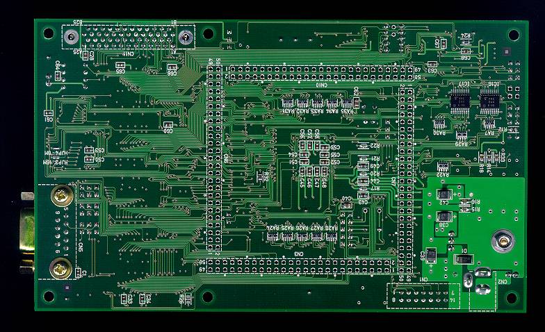 またCPU内蔵のシリアルコントローラをRS-232-Cとして使えるように,D-Sub9ピンのRS-232-Cコネクタを装備しています.この端子はDTE仕様(パソコン側と同じ仕様)にもDCE仕様(モデム側と同じ仕様)にも,ジャンパを切り替えることで設定可能です.