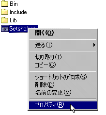 先ほど作成した SETSHC.BAT を選択して,右クリックでポップアップメニューを開いて,プロパティを選択します.