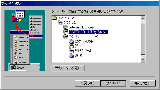 登録するスタートメニューには“PARTNER-J スタータキット”を選択します.