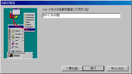 これでスタートメニューに“SH C DOS窓”などの名前でショートカットが登録されます.