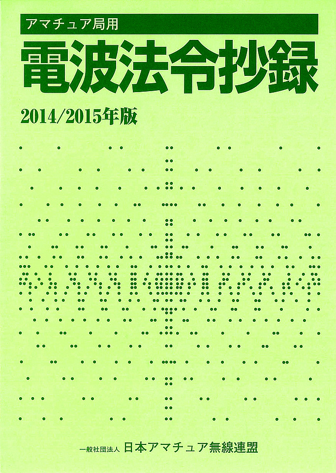 自動車の運転と同様に,無線局の運用には,法令の理解が欠かせません.そのためアマチュア局には,最新の「電波関係法令集」を備え付けておくことをお勧めします. すべての法令を網羅している電波法令集は,とてもぶ厚く,アマチュア局には関係ない部分も多くあります.「アマチュア局用電波法令抄録2014/2015年版」は,アマチュア局を運用するために必要な法令だけを,過不足なくまとめています.また,法令の前後の関係もよくわかるので,アマチュア無線技士国家試験を受験される方の参考書としても,必携の書といえるでしょう.