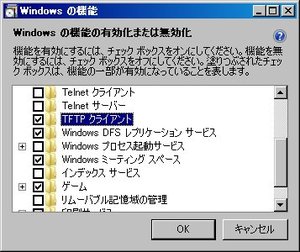 するといったん図5のような表示のあとに、図6のような画面が表示されるので、スクロール・バーを移動して「TFTPクライアント」にレ点をつけて、「OK」をクリックしてください。
