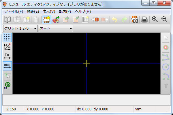 基板エディタのメイン画面で,上側ツールバー左から5番目の「モジュールエディタを開く」をクリックしてください.図11のモジュール・エディタが開きます.